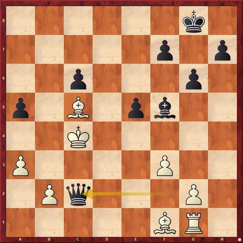 25. Kb1 Rd1+ 26. Qc1 Rxc1+ 27. Kxc1 Nd3+ 28. Kd1 Qc1+ 29. Ke2 Qxc2+ 30. Ke3 Qf2+! 31. Kxd3 Bf5 32. Kc4 Qc2#