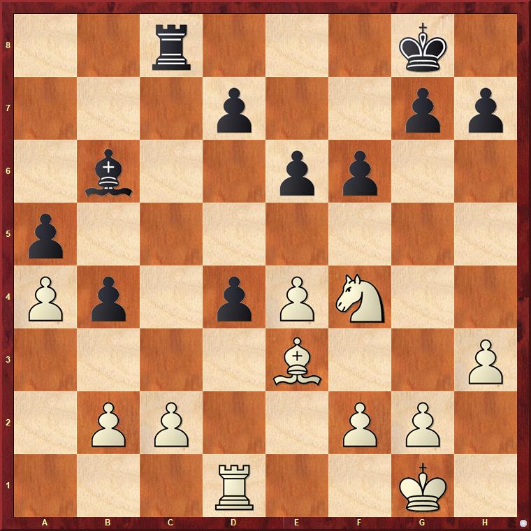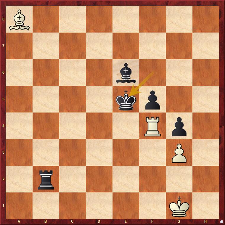 Black simplifies into an easily won endgame with 55…Rxf2 56. Kxf2 Bd5 57. Bxd5 Kxd5 58. Ke3 Ke5 and White resigned.